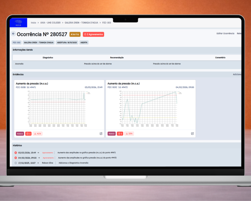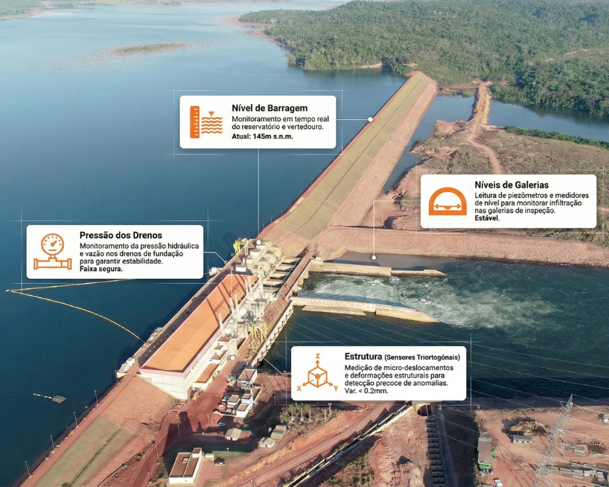 Antes da implementação da solução, a empresa enfrentava o desafio de monitorar ativos estruturais, eletromecânicos e elétricos de forma descentralizada, o que dificultava a antecipação de riscos críticos. A ausência de uma visão integrada sobre variáveis fundamentais — como a pressão da água nas barragens, a deflexão do concreto e o nível dos reservatórios — impunha uma gestão baseada em inspeções pontuais, elevando o risco de falhas funcionais.