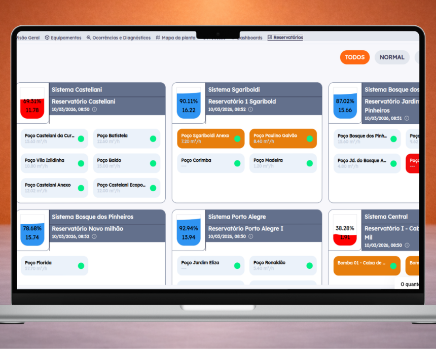 Antes da parceria com a IBBX, a organização enfrentava severas dificuldades para monitorar seus ativos distribuídos, o que resultava em constantes paradas não programadas e altos custos com manutenções corretivas. A ausência de visibilidade em tempo real sobre variáveis críticas, como pressão, nível e vibração, gerava riscos frequentes de desabastecimento populacional, além de uma operação reativa que elevava os gastos com energia e reparos emergenciais.