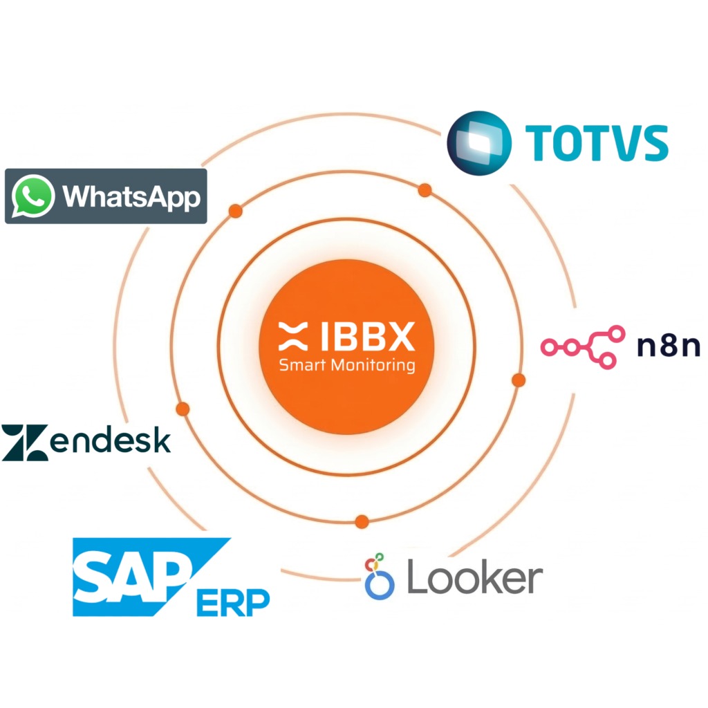 Através de uma API aberta, a IBBX conecta sua telemetria nativamente ao ecossistema da sua empresa. Integramos dados estratégicos ao Looker, TOTVS e SAP para uma gestão robusta de BI e ERP, garantindo que a saúde dos ativos alimente diretamente seu planejamento financeiro e operacional. Para agilizar a execução, conectamos o monitoramento ao Zendesk para abertura de chamados e ao N8N para automações personalizadas, enviando alertas críticos em tempo real via WhatsApp. É a inteligência de dados da IBBX integrada às ferramentas que você já confia.